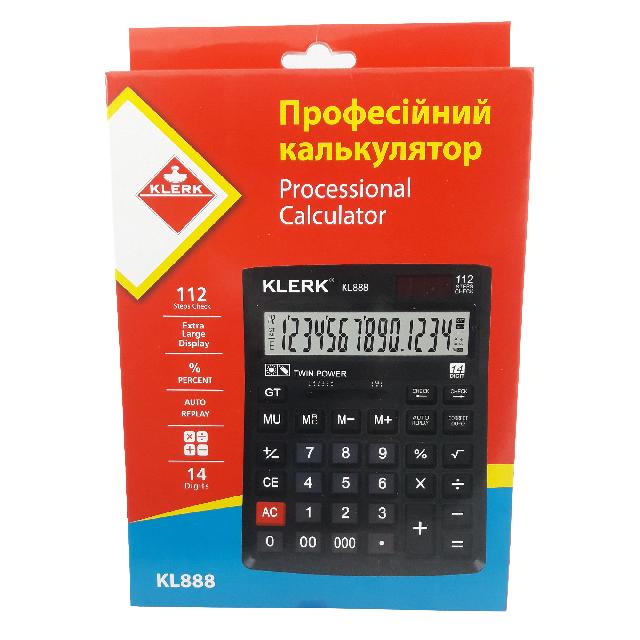 Калькулятор 14-розрядний; 205*155*40мм; кол.чор.; арт. KL888; KLERK