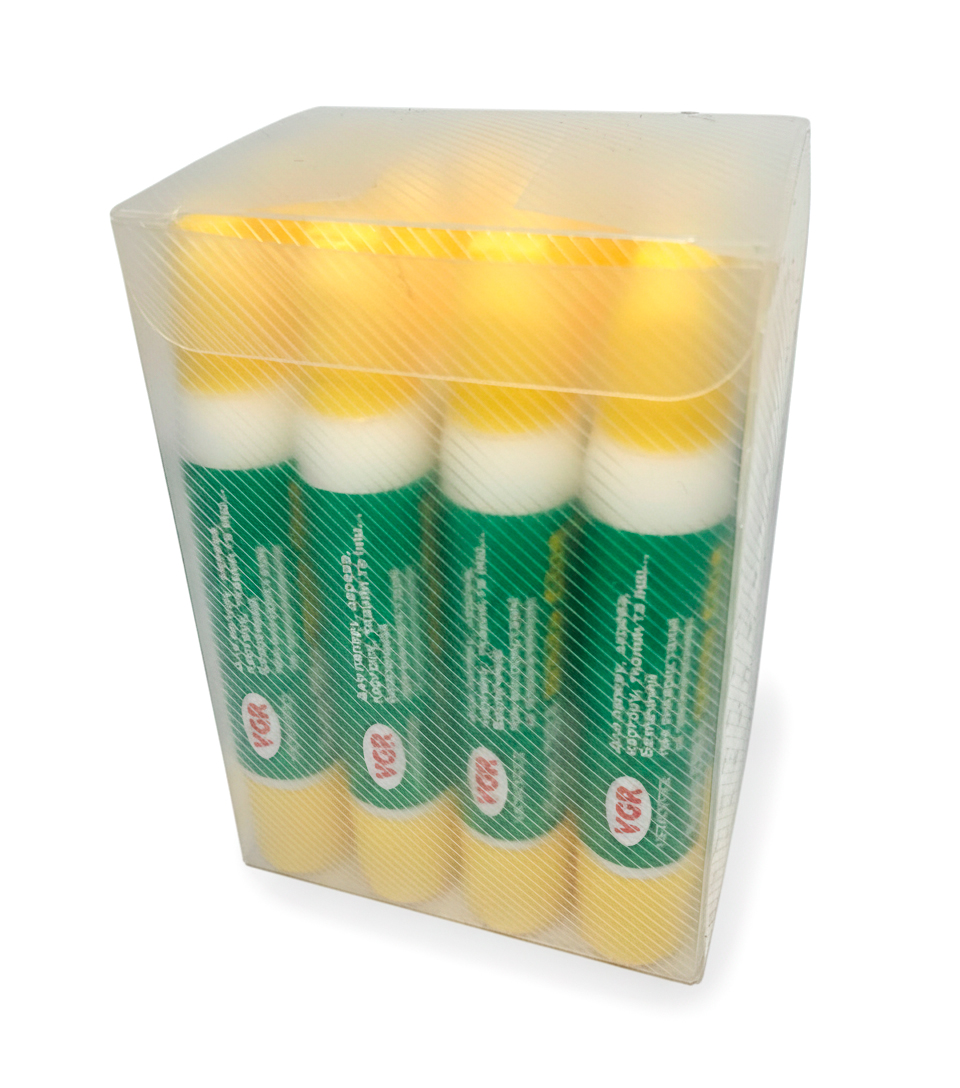 Клей ПВА; два аплікатори: тонкий і широкий. Об'єм 40 г. упаковка дисплей; арт. VR1250; VGR