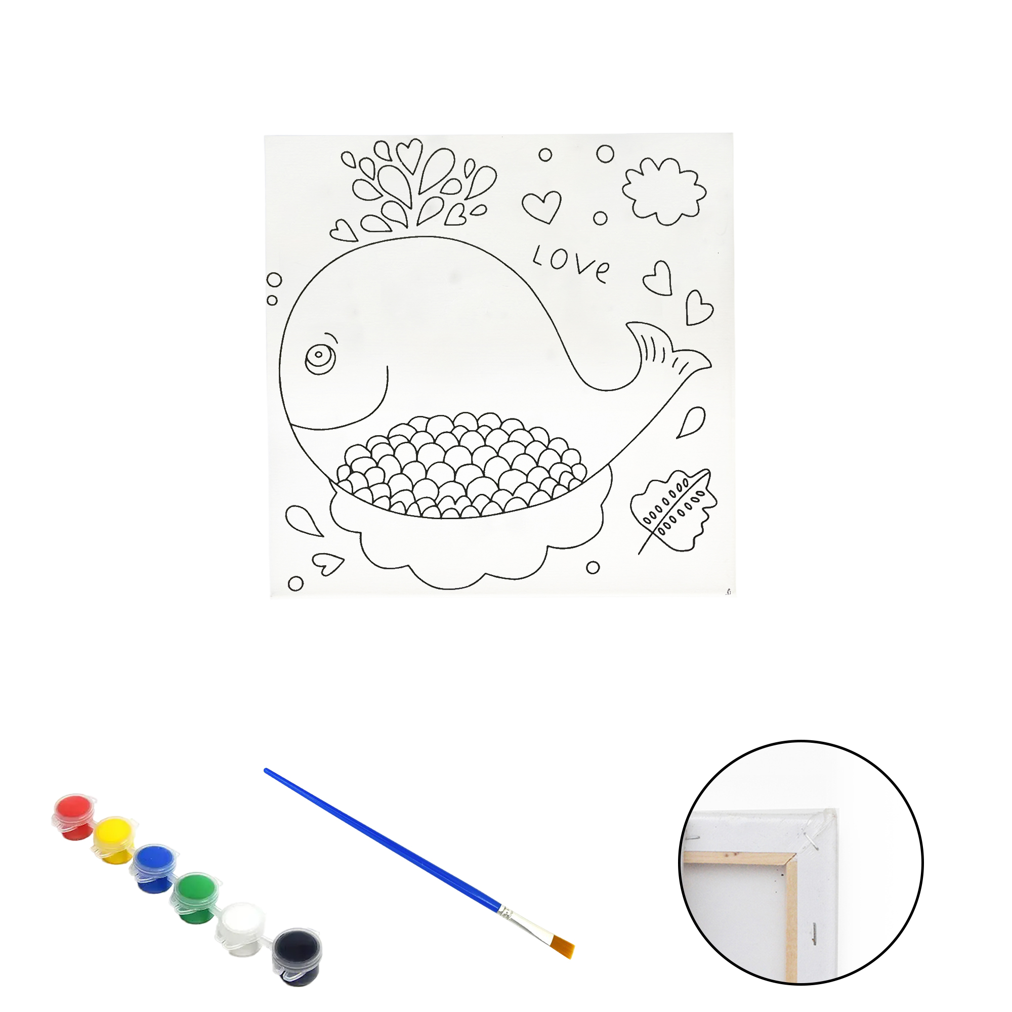 Полотно-розмальовка з контуром на дерев'яному підрамнику "Риба-кит", 20*20см., фарби + пензлик в наб., арт.QS20*20-5