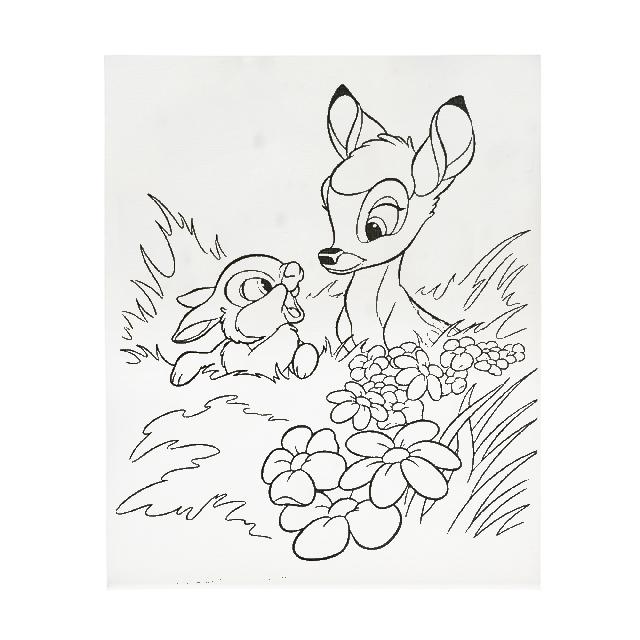 Полотно-розмальовка з контуром на картоні "Бембі та заєць", 20*25см., арт.20*25-7