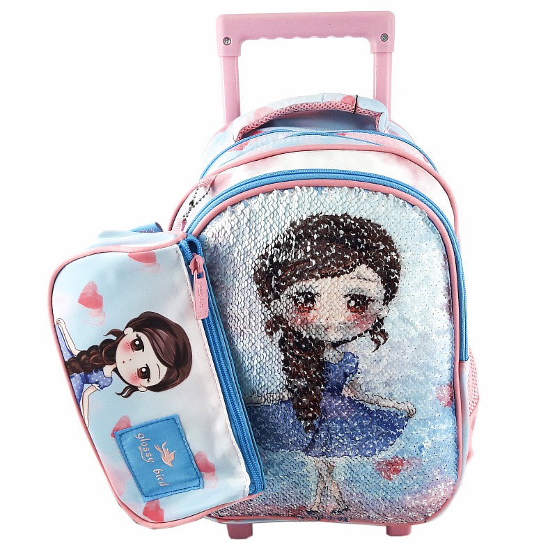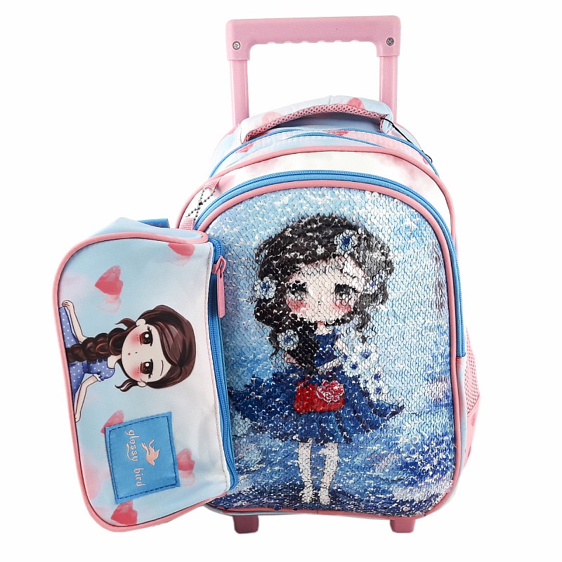 Рюкзак на колесах з пеналом 35*24*17/22,8*11*8 см "Дівчинка" блакитний; поліестер; арт. GB2354TS; VGR