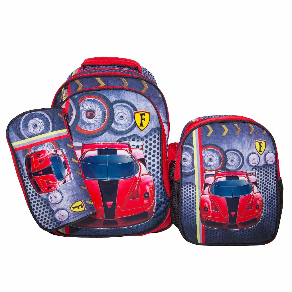 Рюкзак з пеналом і ланчбоксом; 41*34*18/22*12*7/26*20*10см; червоний "Машина", поліестер; арт. GB2266; VGR