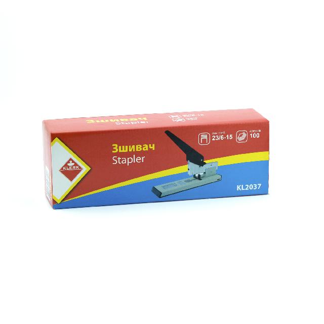 Зшивач метал.; на 100 арк.; кол. чор.; скоба №23/6-15; арт. KL2037; KLERK