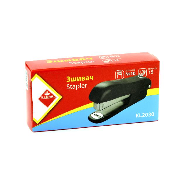 Зшивач пласт. з розшивачем; 90*40*25 мм.; на 12арк.;скоба №10; кол. асорті; арт. KL2030; KLERK