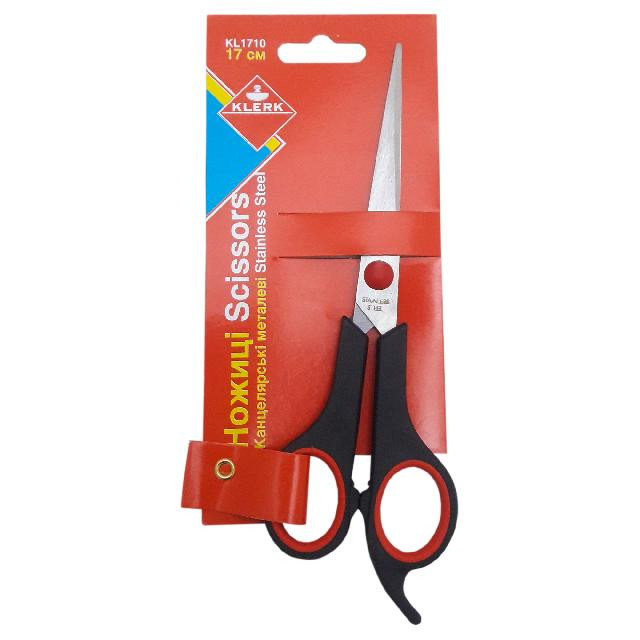 Ножиці канц. метал.; 17см; кол. ручок чор.; пласт.ручки з гум.вст.; карт. упак. з європідв.; арт. KL1710; KLERK
