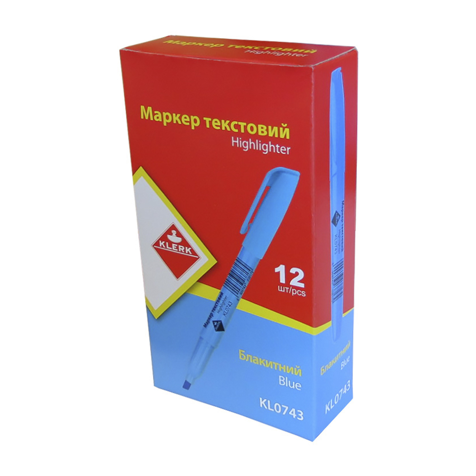 Маркер текст.; кол. неон блакит.; товщ.лінії 2-4мм, клінопод.; арт. KL0743; KLERK