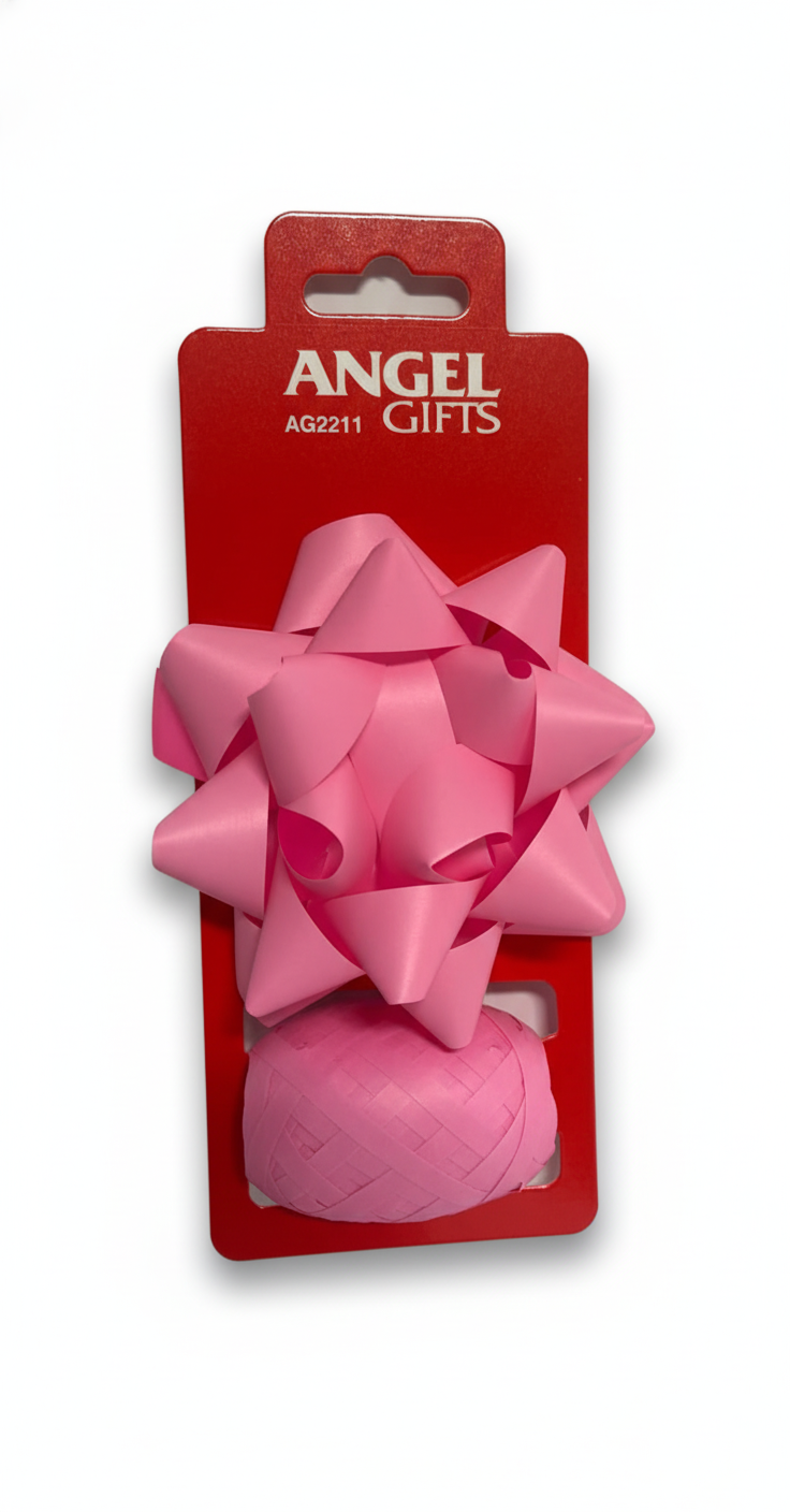 Бант та стрічка-кокон в наборі; колір рожевий; 1 бант 8 см. + стрічка 5мм*10м; матеріал: поліпропілен; арт. AG2211; ANGEL GIFTS