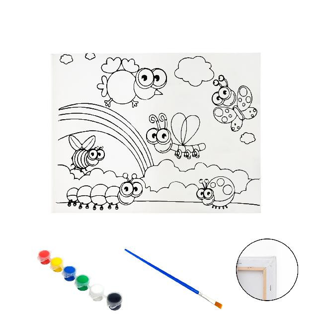 Полотно-розмальовка з контуром на дерев'яному підрамнику "Веселі комахи", 15*20см., фарби + пензлик в наб., арт.QS15*20-7