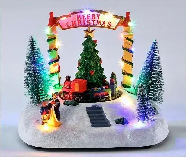 Декор "Різдвяна ялинка з потягом" інтерактивний 18.5х14х15 см, арт. AG3426; ANGEL GIFTS