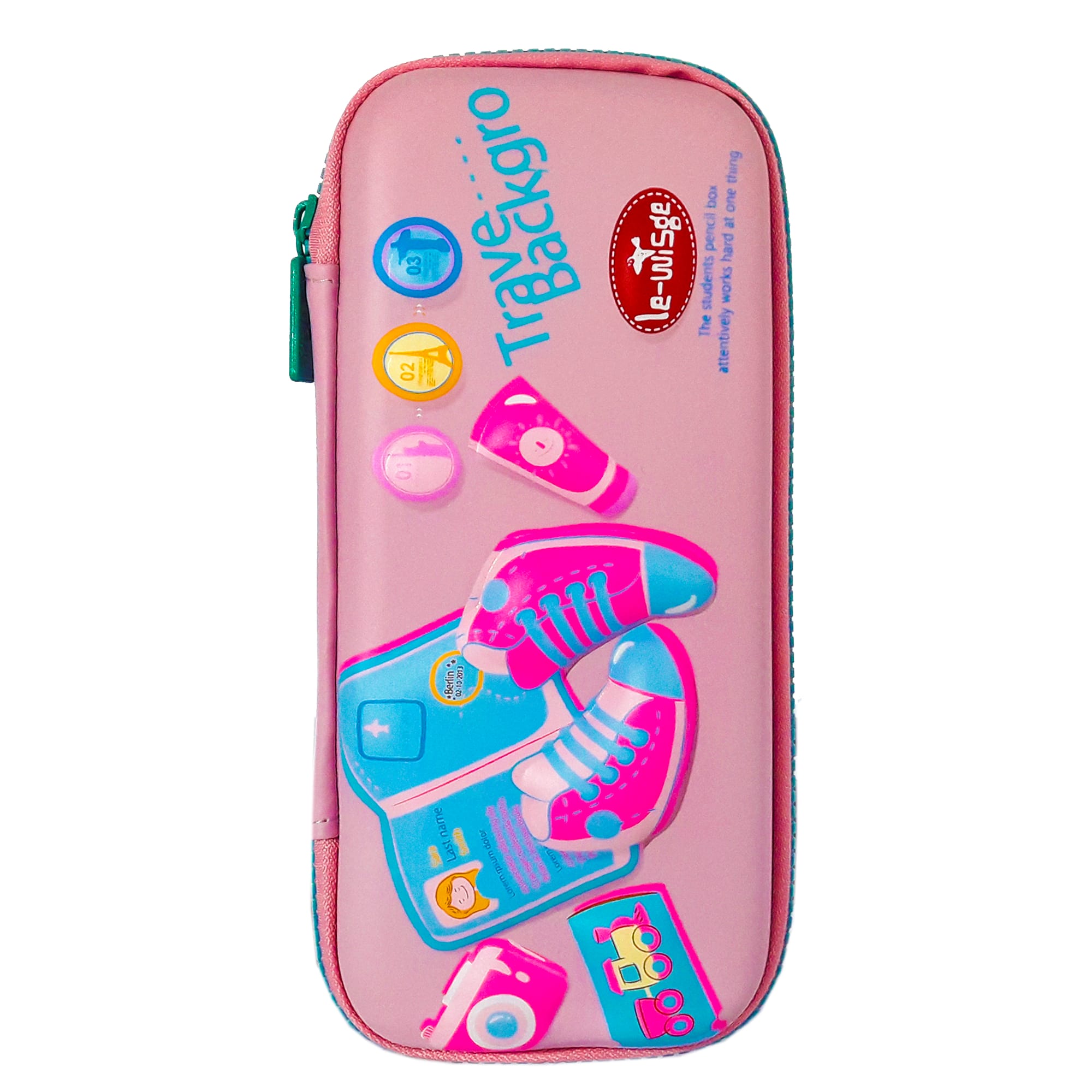 Пенал каркасний 3D; 22*9,5*4 см. ; "Подорож" кол. рожевий; арт. VR23130; Le-WiSge