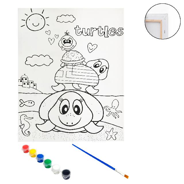 Полотно-розмальовка з контуром на дерев'яному підрамнику "Черепахи", 15*20см., фарби + пензлик в наб., арт.QS15*20-1