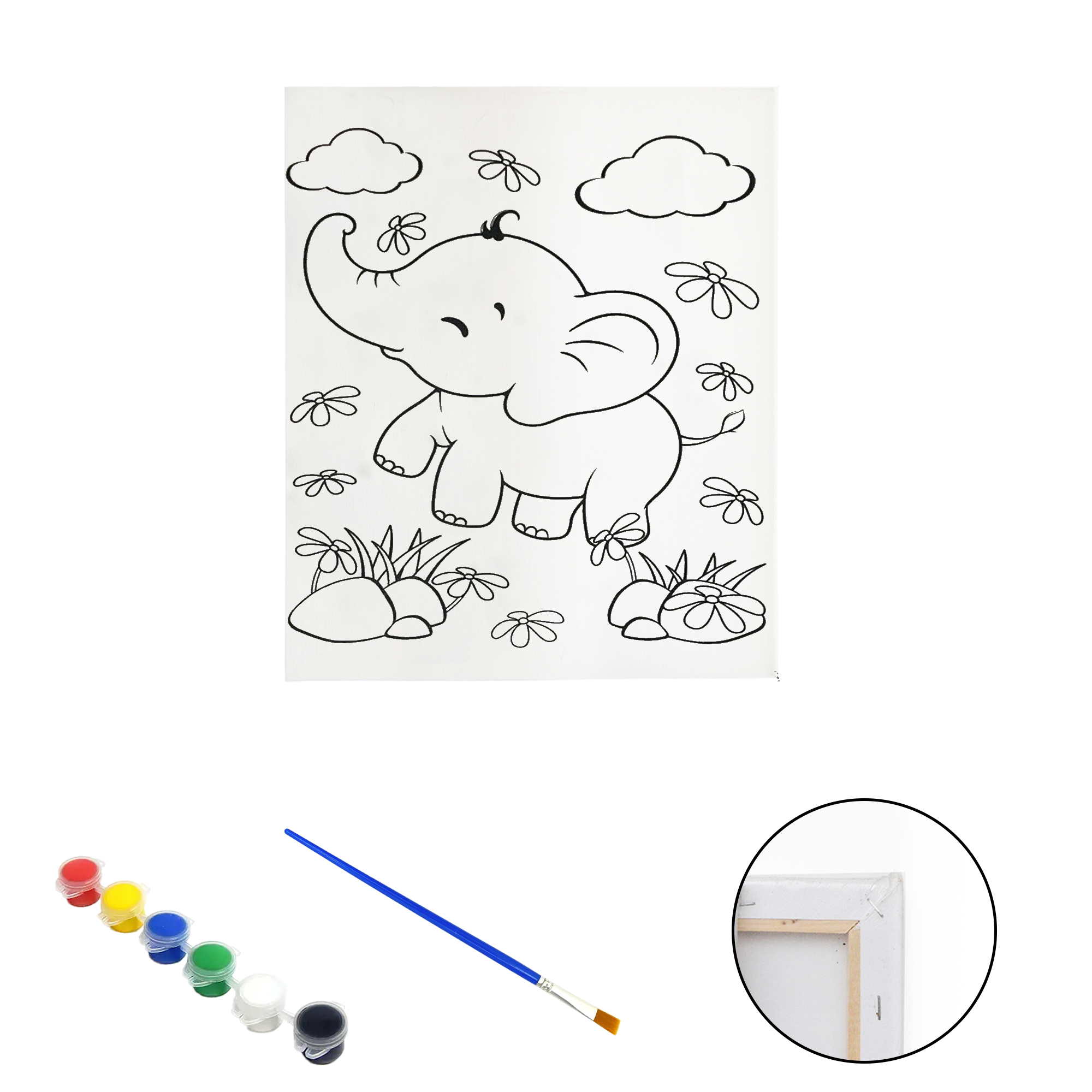 Полотно-розмальовка з контуром на дерев'яному підрамнику "Слоник" 20*30см., фарби + пензлик в наб., арт.QS20*30-5