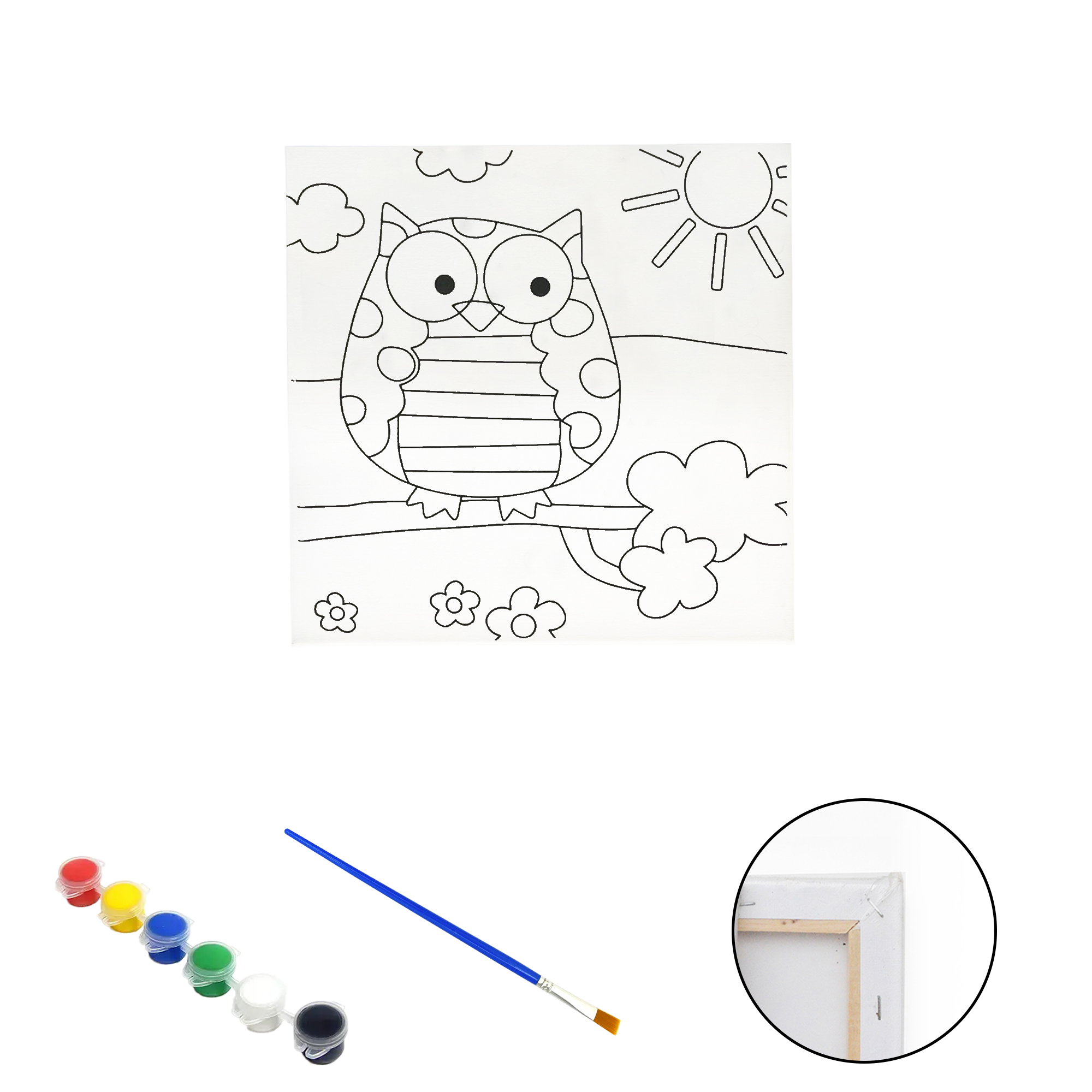 Полотно-розмальовка з контуром на дерев'яному підрамнику "Сова", 20*20см., фарби + пензлик в наб., арт.QS20*20-3