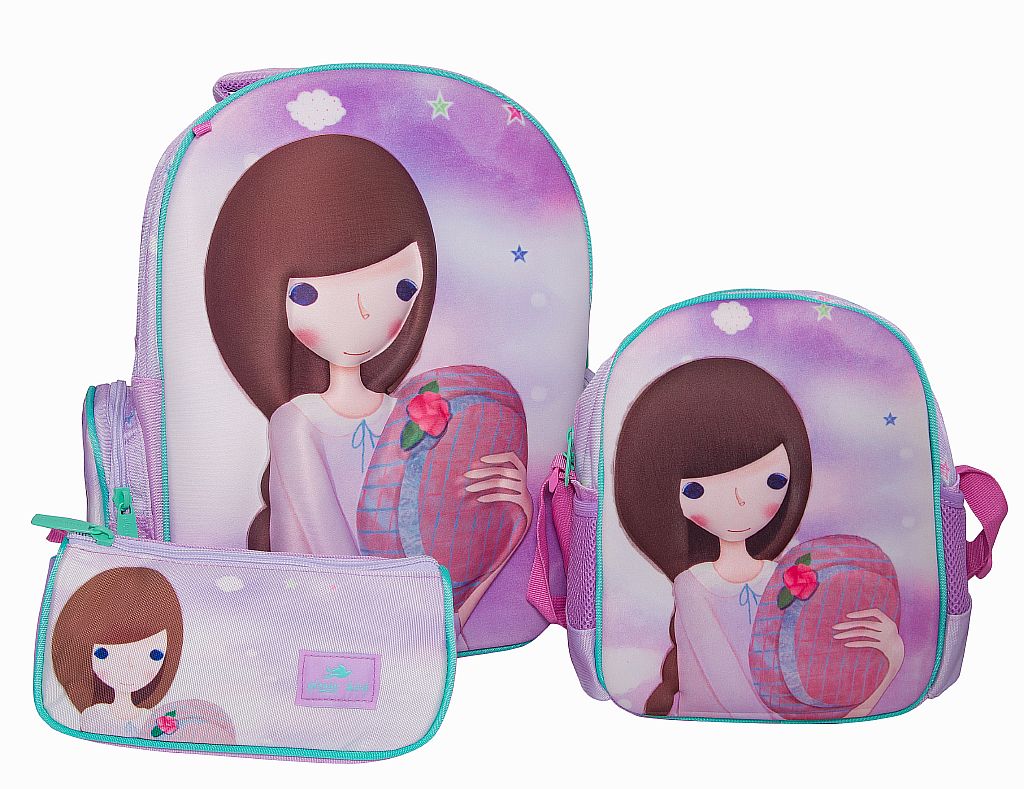 Рюкзак з пеналом і ланчбоксом; 39*31*13/22*12*7/27*21*11см; бузковий "3Д Дівчинка", поліестер; арт. GB2125; VGR