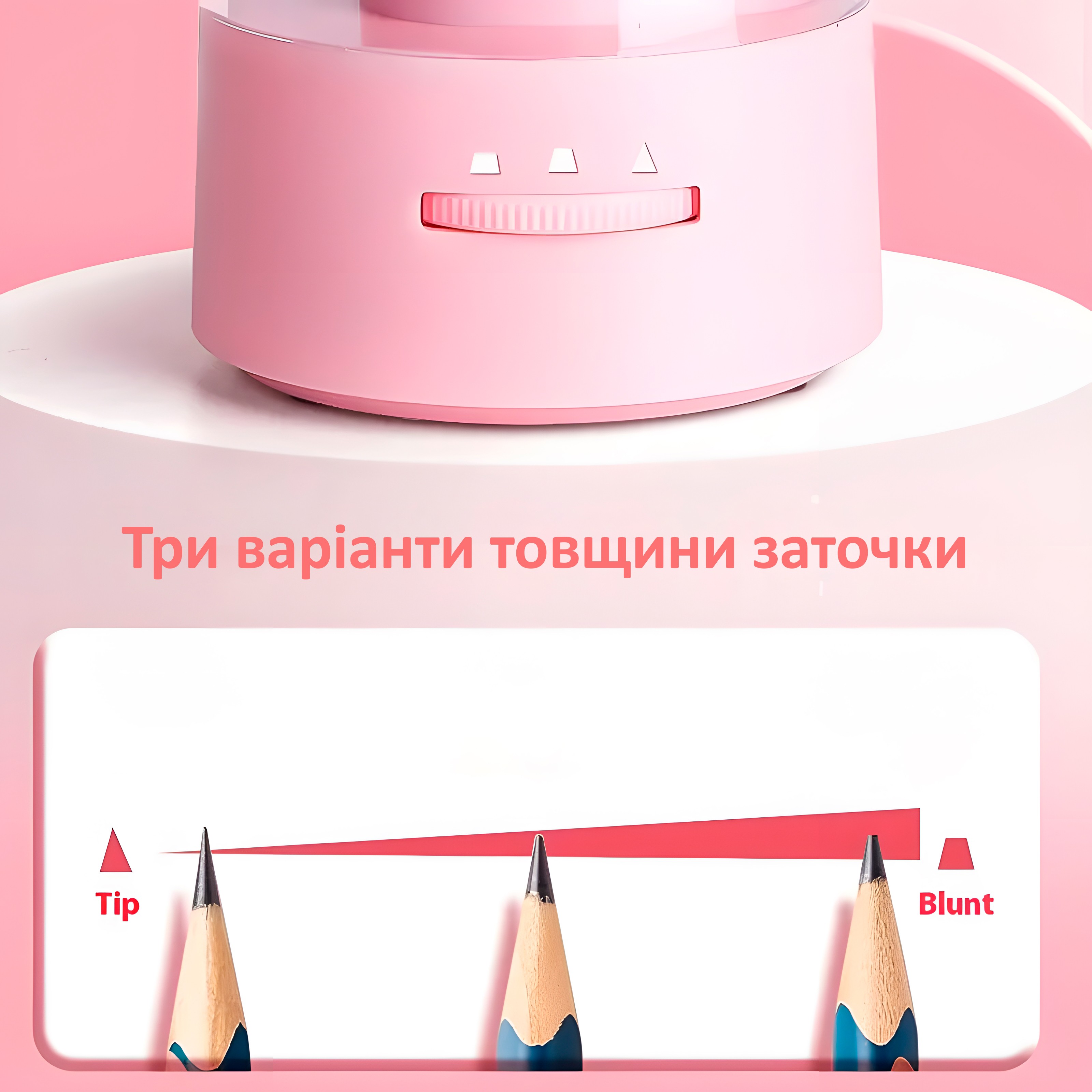 33+33 Точилка для олівців електрична зі зносостійким вольфрамовим лезом. Гострота заточування регулюється на корпусі спеціальним коліщатком. Наявність великого контейнера для збору стружки - зручно та практично. Антиковзні накладки на основі не дають точилці ру